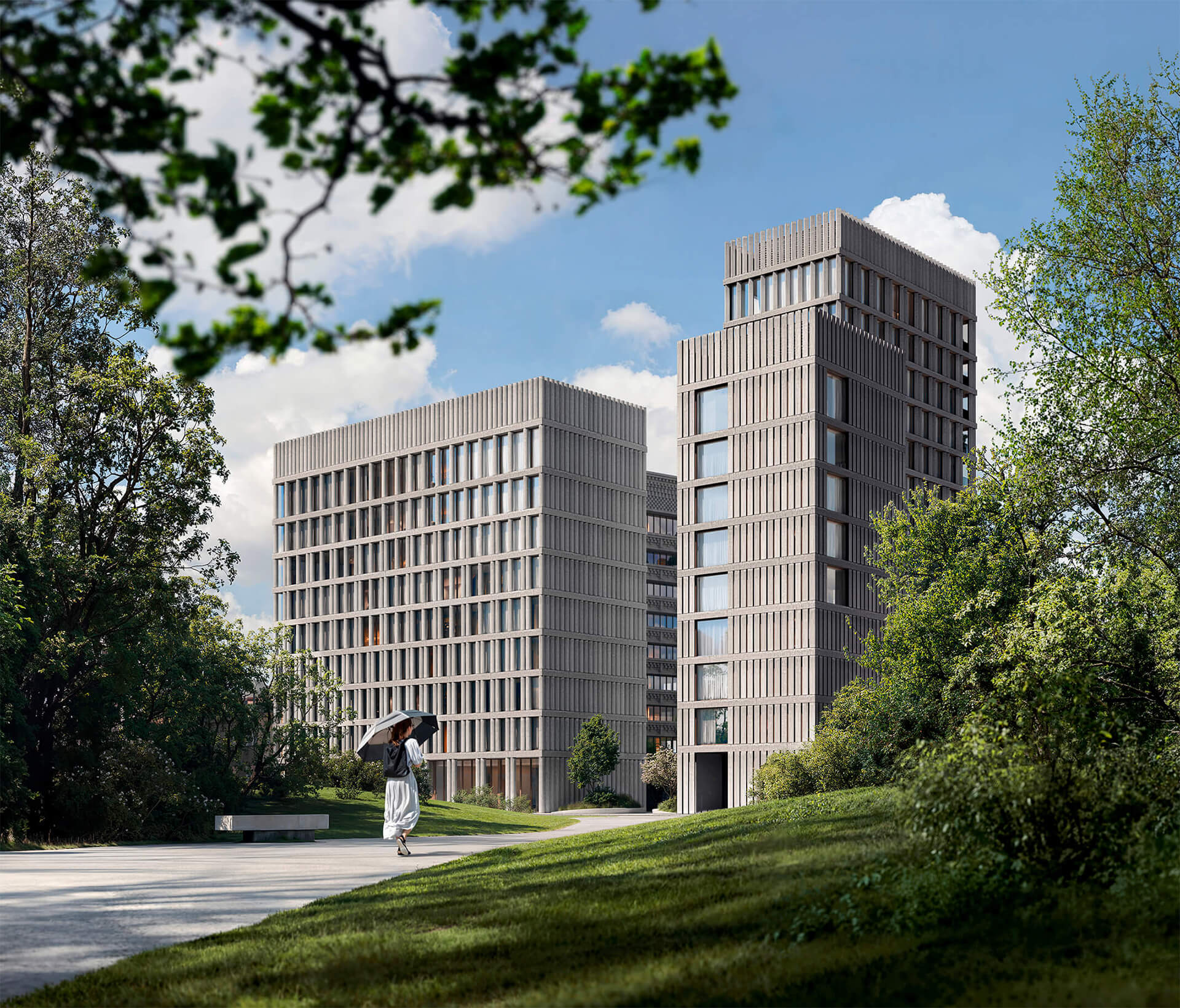 Разработанный архитектурным бюро «Цимайло Ляшенко и Партнеры», комплекс сочетает в себе элементы классической архитектуры и современного минимализма. Использование натуральных материалов и спокойных цветовых решений создает атмосферу уюта и гармонии.